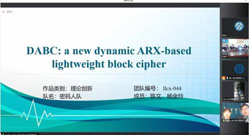 在决赛中,经过激烈的角逐,公司研究生在参赛队伍中脱颖而出。由李浪教授指导陈文、杨金玲同学完成的参赛作品“DABC: a new dynamic ARX-based lightweight block cipher”在理论创新赛道荣获一等奖,林睦纲博士指导易蒙婷、朱炫莹、文坤辉同学完成的参赛作品“AI唇语识别系统”在应用创新赛道中荣获一等奖;李浪教授指导的刘嘉辉、尹志诚、张叶舟同学完成的参赛作品“Research on efficient screening method of correlation power analysis”,焦铬教授指导的吴芸、刘佳豪、杨圆同学完成的参赛作品“联合多尺度融合增强的微动脉瘤分割Transformer”,赵辉煌教授指导的向金、吴逸纯、胡敏桦同学完成的参赛作品“智绘艺术”,梁小满教授指导的陈悦、张法超同学完成的参赛作品“智能在线试衣间”,陈中博士指导的王露洁、刘童哲、龙博峰同学完成的参赛作品“基于YOLO v5+DeepSORT的智能影像加密系统”荣获二等奖。