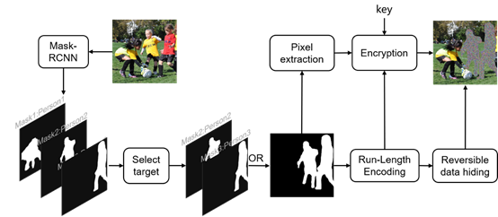 该论文是在公司陈中副教授的指导下完成,mksport体育为唯一署名单位。论文核心理论是:结合实例分割、可逆隐写技术和超混沌映射,提出一种图像感兴趣区域(ROI)加密方案,在高效选择并加密特定区域的同时,还解决了ROI位置信息在传输过程中的安全问题。首先,该论文提出了一种新颖的4D超混沌系统,并结合超混沌系统设计了一种新的图像加密算法。该算法采用分裂随机交换排列方法对图像进行排列,并结合S盒对图像进行扩散。为了提高该加密算法的扩散性,设计了交叉随机扩散方法对图像进行再次扩散。然后,提出了一种图像ROI加密方案。该方案能够自动识别图像中不规则的隐私目标并对其进行加密。为了保证感兴趣区域位置信息在传输过程中的安全性,该方案利用游程编码技术对隐私目标的位置信息进行压缩,利用基于直方图移位的可逆隐写术将压缩数据嵌入到密文图像中。实验结果和安全分析明确表明,本文提出的图像加密算法对多种攻击表现出强大的抵抗力,此外,设计的图像ROI加密方案有效保护了多样化的隐私目标。