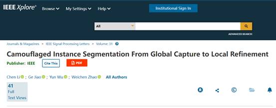 近日,MK体育2021级电子信息专业研究生李臣以第一作者在SCI二区期刊IEEE Signal Processing Letters(影响因子:3.9)发表研究论文,论文题目为《Camouflaged Instance Segmentation from Global Capture to Local Refinement》。