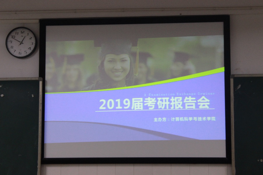 2019年4月29日中午12点50分,公司在计科楼209室举办2019届毕业生考研交流报告会,莅临本次报告会的领导有公司党总支书记陈洪清、党总支副书记彭正以及辅导员谢媛,本次报告会由夏娇娇主持。