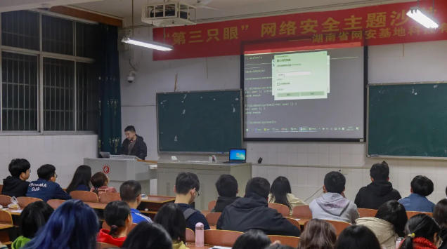 2021年4月7日19:00,在公司118教室,湖南省网安基地科技有限公司石海赟老师开展了“第三只眼”网络安全主题讲座。公司2018级、2019级、2020级网络工程专业全体员工聆听此次讲座。