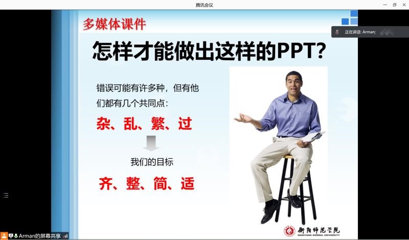 接着,李老师从微课选题、教学设计、课件制作、视频录制和剪辑等各环节进行讲解。并就授课导入、时间把控等方面给大家提出建议。