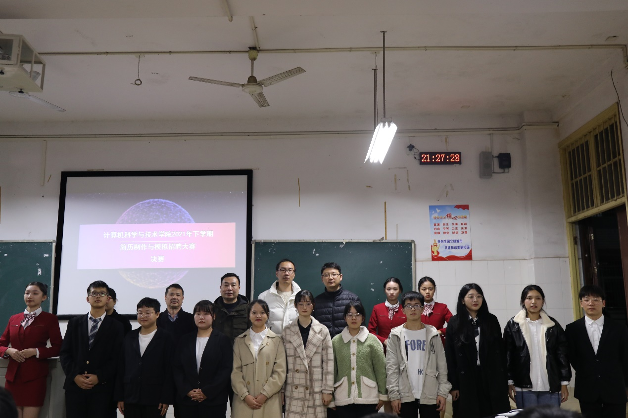 为加深公司员工对择业就业的正确认识,进一步加强就业指导力度,帮助员工全方位了解招聘的相关知识、技巧,模拟体验现场求职的气氛,不断增强就业实力。公司于11月11日晚在计科楼118教室举办 “前程无忧,勇往‘职’前”简历制作与模拟招聘大赛决赛。院总支书记陈洪清、总支副书记彭正、分团委书记马杰老师、辅导员徐峰老师、罗旭月老师担任此次决赛评委。