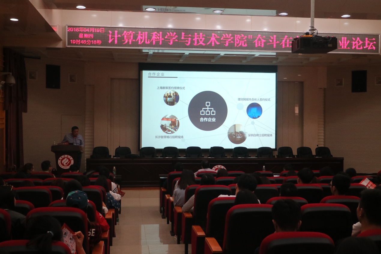 湖南源辰科技公司刘总给大家演讲的主题是“IT技能与职业素养”,提醒大家提升自己的专业技能和职业素养才是竞争的“不二”法宝。关于就业方向,刘总也建议同学们可以考虑数据挖掘,爬虫(Python)等方向。针对大家关心的问题——选择岗位的时候更应该看重什么,刘总说出了他的看法“第一份工作,平台比工资更重要!”