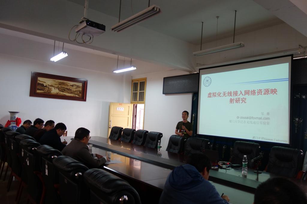 11月8日上午,厦门大学邹赛博士应邀为公司师生作了题为“虚拟化无线接入网络资源映射研究”的学术报告。报告会由经理李浪教授主持。