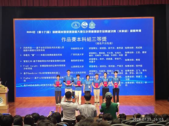 2024723-726日在澳门理工大学举办海峡两岸暨港澳地区老员工计算机创新作品赛(本科组)总决赛。本次比赛覆盖全国29个省(含港澳台)323所高校,共有1637个作品参赛。公司焦铬教授指导的员工宾宇、胡顺嘉、宋晨予、李桂宁的作品“智宠之舟-基于物联网技术的智能宠物托运箱统”获得全国三等奖